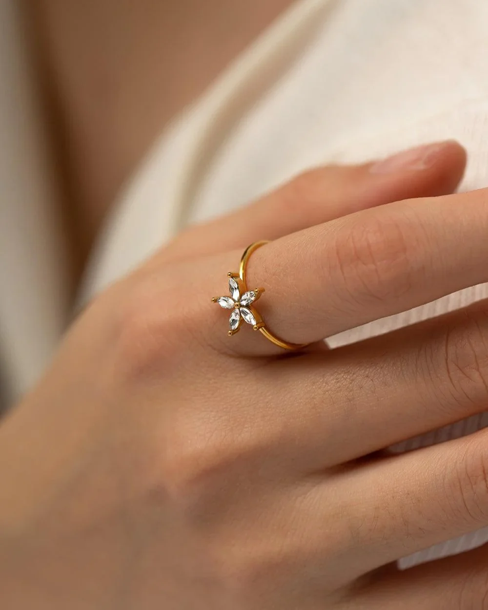 Flower Zirconia Resizable Ring
